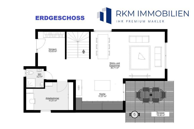 Herzstück des Hauses ist die offene Wohnküche modern, funktional und zugleich einladend gestaltet. Die hochwertige Einbauküche mit modernen Geräten lässt keine Wünsche offen und macht jeden Kochabend zu einem Erlebnis.