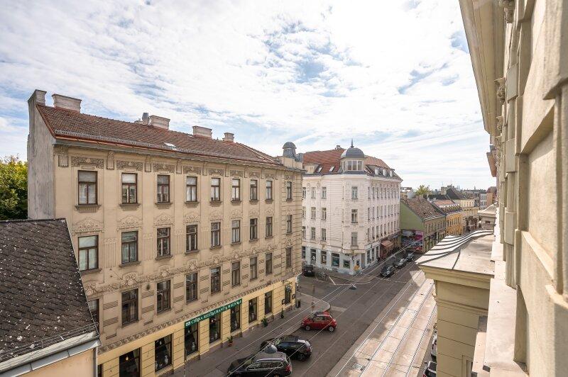 Das Objekt liegt im 3. Stock (ohne Aufzug) eines repräsentativen Stilaltbaus mit gegliederter Fassade. Die Liegenschaft strahlt historischen Charme aus und befindet sich in gutem Erhaltungszustand.