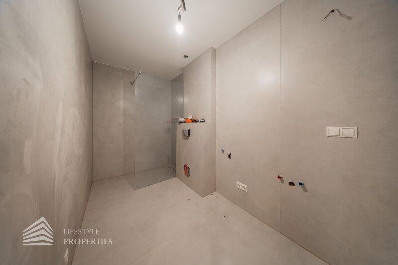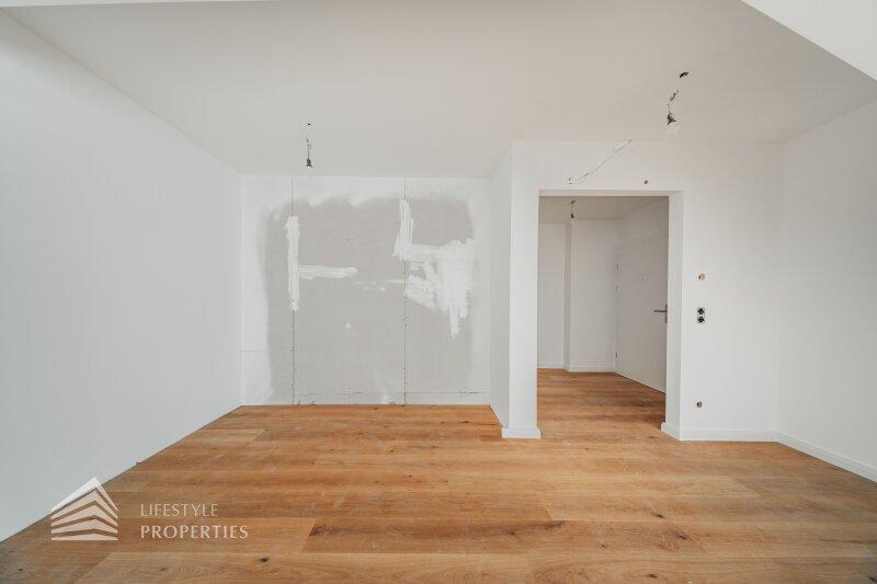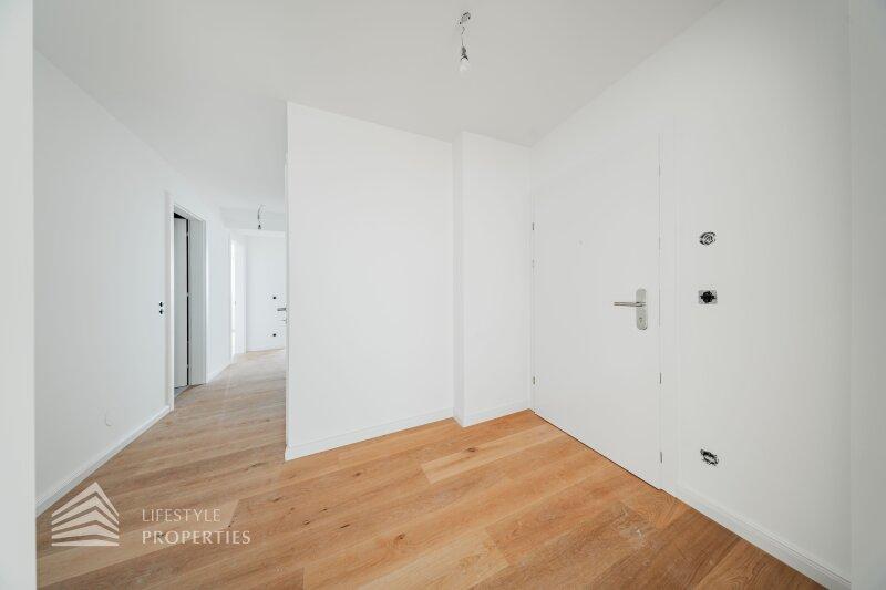 Jede Wohnung verfügt über Freiflächen (Balkone, Terrassen bzw. Grünflächen). Alle Wohnräume sind mit hochwertigem Eichenparkett ausgestattet, während das Badezimmer mit zeitlos eleganten Fliesen versehen ist. In der gesamten Wohnung sorgt eine Fußbodenheizung für angenehmen Komfort. Zusätzlichen Stauraum bietet ein großzügiges Kellerabteil. Im Haus stehen zudem ein Kinderwagen- sowie ein Fahrradabstellraum zur Verfügung. Weiters gibt es eine Garage mit 7 KFZ-Stellplätzen.
