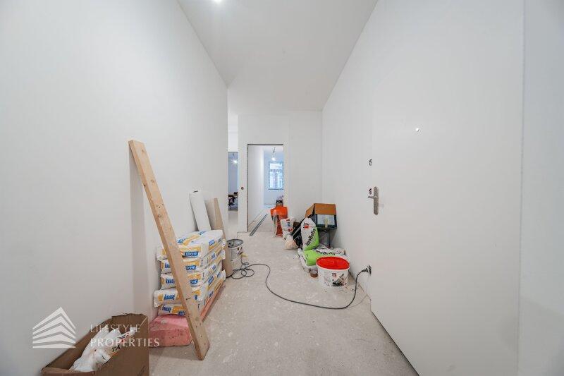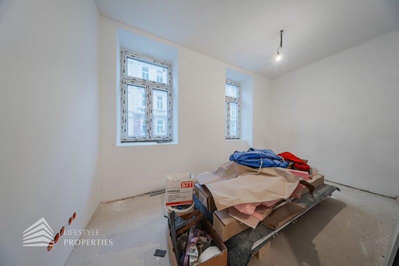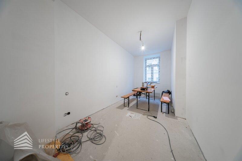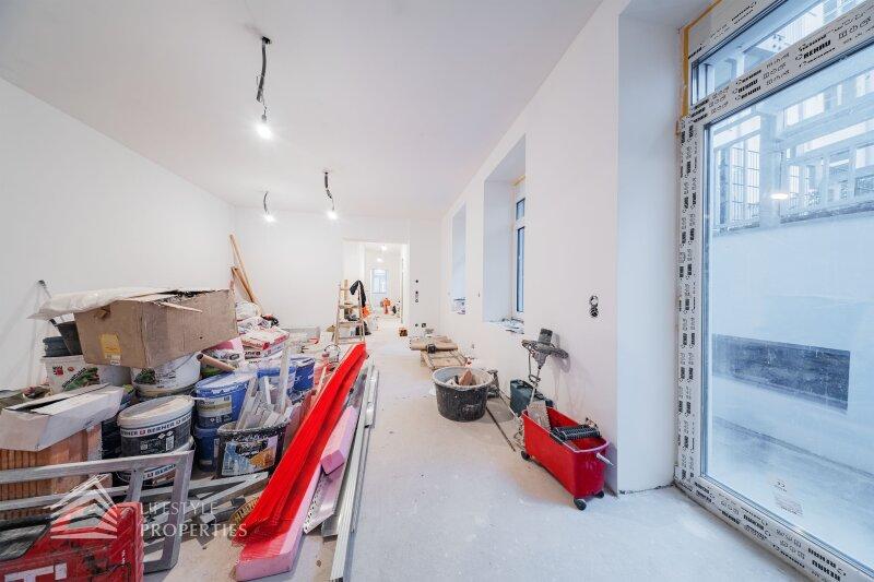 Diese helle 4-Zimmer Wohnung mit ca. 95 m² Wohnfläche befindet sich im EG, eines charmanten modernisierten Gründerzeithauses, in welchem 9 Wohnungen mit Wohnflächen zwischen 95 m² und 130 m² mit hochwertiger Ausstattung zum Verkauf gelangen. Die Wohnung gliedert sich in einen Vorraum, eine Wohnküche, drei Zimmer, ein Badezimmer, einen Abstellraum und eine separate Toilette. Zusätzlich dazu bietet Ihnen das Objekt eine ca. 9 m² große Terrasse. Alle Wohnräume sind mit hochwertigem Eichenparkett ausgestattet, während das Badezimmer mit zeitlos eleganten Fliesen versehen ist. In der gesamten Wohnung sorgt eine Fußbodenheizung für angenehmen Komfort.