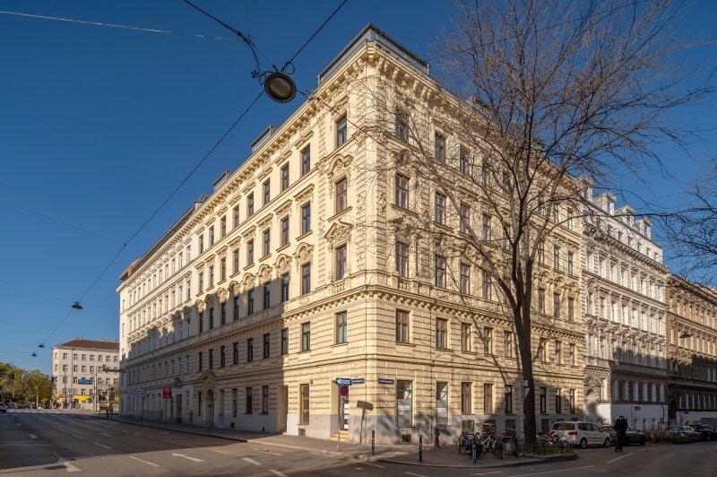Die Wohnung befindet sich im 3. Obergeschoss eines gepflegten Altbaus und ist bequem über einen Lift erreichbar. Der typische Altbaucharme des Hauses schafft eine behagliche Atmosphäre und unterstreicht die historische Architektur.