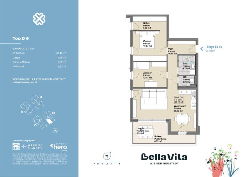 Das Wohnbauprojekt Bella Vita nahe des verzaubernden Wiener Neustädter Kanals steht für "schönes Leben" und das wird hier möglich. Im mediterranen Stil die Außen- und Allgemeinflächen: Gepflasterte Wege in Muschelkalk, Lauben und Schaukeln vermitteln Leichtigkeit, Gemütlichkeit und Wohlgefühl. Im Inneren überzeugende Raumaufteilung, stimmige Architektur, hochwertige Ausgestaltung. Und die Nachhaltigkeit stets im Blick, u.a. durch PV-Anlagen zur Energiegewinnung und einem Dachgeschoß in Holzhybridbauweise.