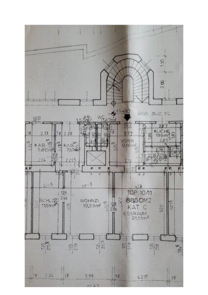 Bei Betreten der Wohnung gelangen Sie in den großzügigen Vorraum. Gerade hindurch erreichen Sie einen ca. 21 m² großen Raum, welcher unzählige Nutzungsmöglichkeiten bietet. Dieser führt Sie weiter in das ca. 19 m² Wohnzimmer. Über das Wohnzimmer erreichen Sie ein ca. 12 m² großes Schlafzimmer, sowie ein Kabinett, welches ein weiteres Kabinett und einen Abstellraum mit dem Wohnzimmer verbindet. Die Küche befindet sich links vom Eingang. Das Badezimmer und das separate WC ist ebenfalls vom Vorzimmer zu erreichen.