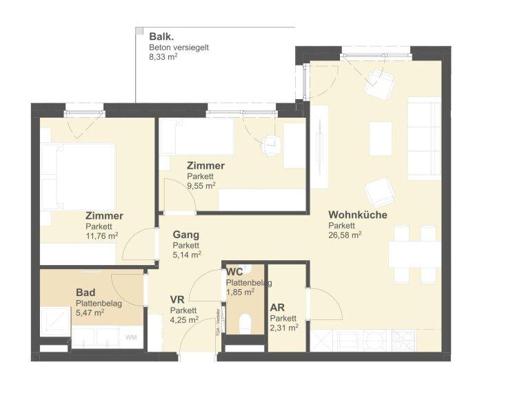 Ob als erstes gemeinsames Zuhause oder als liebevoller Ort für die kleine Familie diese moderne Neubauwohnung im 3. Liftstock bietet genau den Raum, in dem Alltag leicht wird und schöne Momente entstehen.