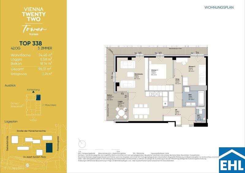 In einzigartiger Lage, direkt bei der U1-Station Kagran und vis-à-vis vom Donau Zentrum, entsteht ein exklusiver, ca. 155m hoher Wohnturm mit 45 Etagen. Die insgesamt 347 Mietwohnungen bieten einen vielfältigen Wohnungsmix: von smart geschnittenen 1,5-Zimmer-Apartments ab ca. 38 m² über komfortable 2-Zimmer-Wohnungen bis hin zu großzügigen 3- und 4-Zimmerwohnungen mit bis zu ca. 80 m².