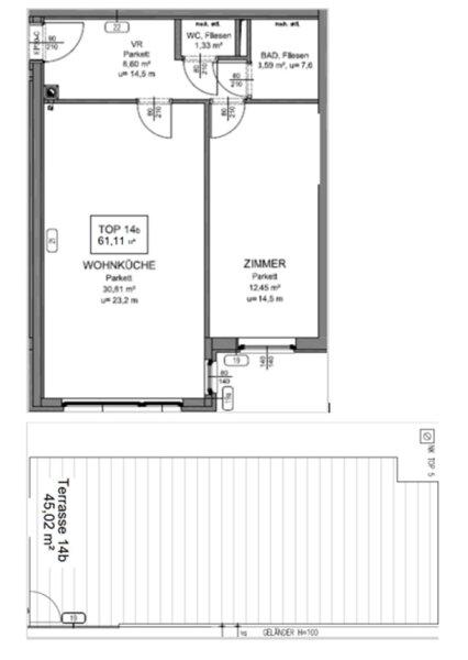 TERRASSENHIT, U3-Nähe, gepflegte 61 m2 Neubau mit 45 m2 Terrasse, 2 Zimmer, Einbauküche, Wannenbad, 3. Liftstock, Lorystraße - Objektnr. 5594907
