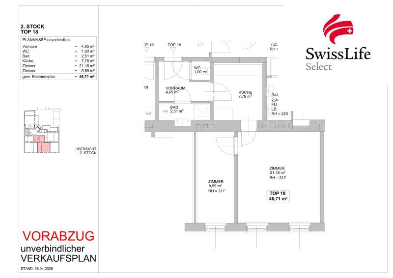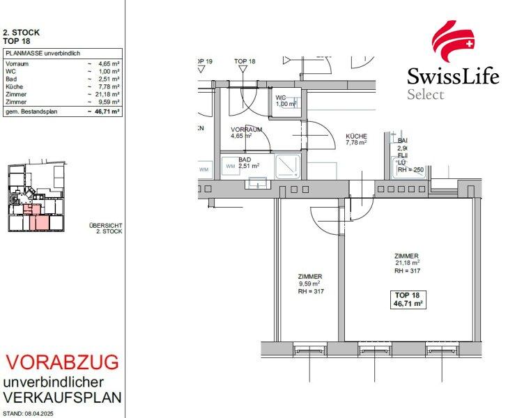 Die Raumaufteilung der Wohnung Top 18 gestaltet sich wie folgt: