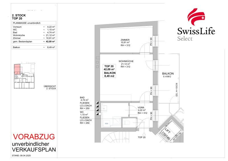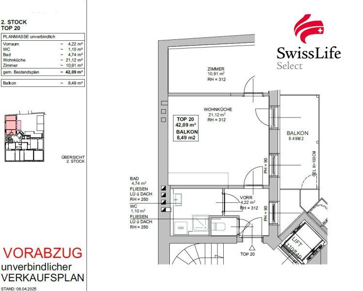 Die Raumaufteilung der Wohnung Top 20 gestaltet sich wie folgt: