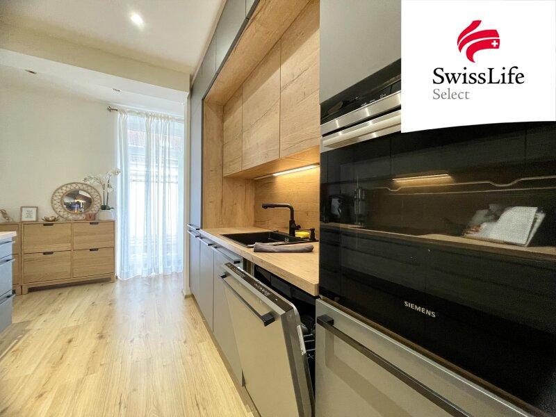 Für die exklusive und geschmackvolle Ausstattung der gesamten Wohnung inklusive hochwertiger Einbauküche mit Marken-Geräten wird eine Möbelablöse angesetzt.