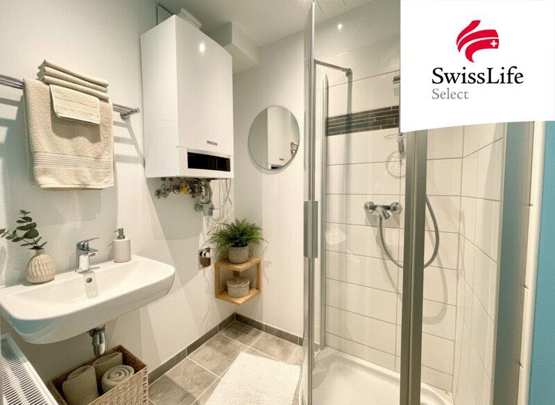 Die Oberflächen von Bad und WC wurden renoviert und präsentieren sich in gepflegtem Zustand.