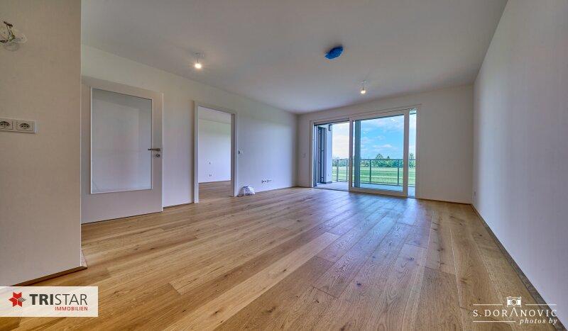 Die Wohnung Top 4 ist ideal ausgerichtet: sowohl von beiden Zimmern als auch vom Balkon der direkt von der Wohnküche aus begehbar ist genießen Sie einen wunderbaren Blick auf das angrenzende grüne Feld sowie eine perfekte Himmelsausrichtung!