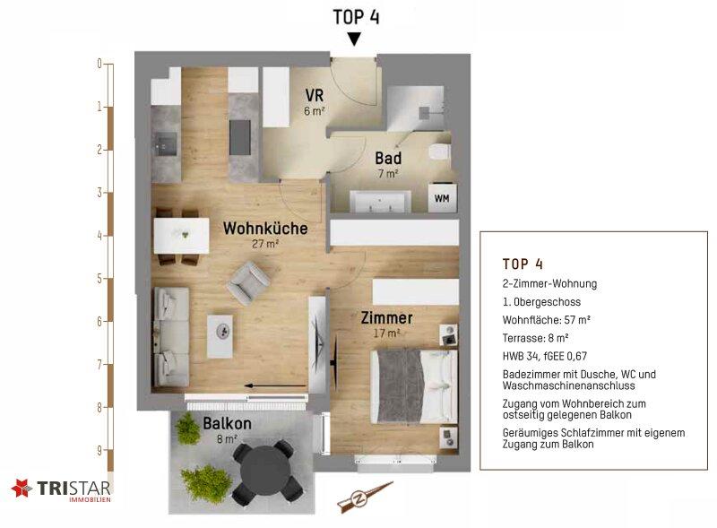 TOP 4: 2 Zimmer, ca. 56 m² + Balkon ca. 8 m² = EUR 399.900