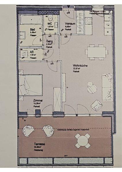 - Vorraum, Wohnküche, Schlafzimmer, Abstellraum, Bad, WC