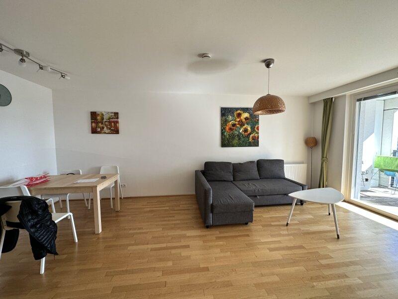 Vermietet wird hier eine komplett modern möblierte 2-Zimmer-Neubau-Wohnung mit Loggia im höheren Stockwerk mit Weitblick ab 01.04.2026!
