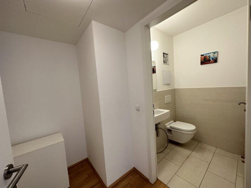 common wellness, fitness & sauna area in the building, house central heating system (Fernwärme Wien), bike room, storage room / cellar, visitors garage, also for residents possible to rent additional; high quality materials were used in this new building; beautiful panorama; the apartment is fully furnished.