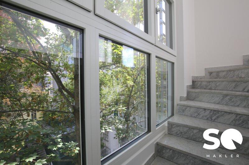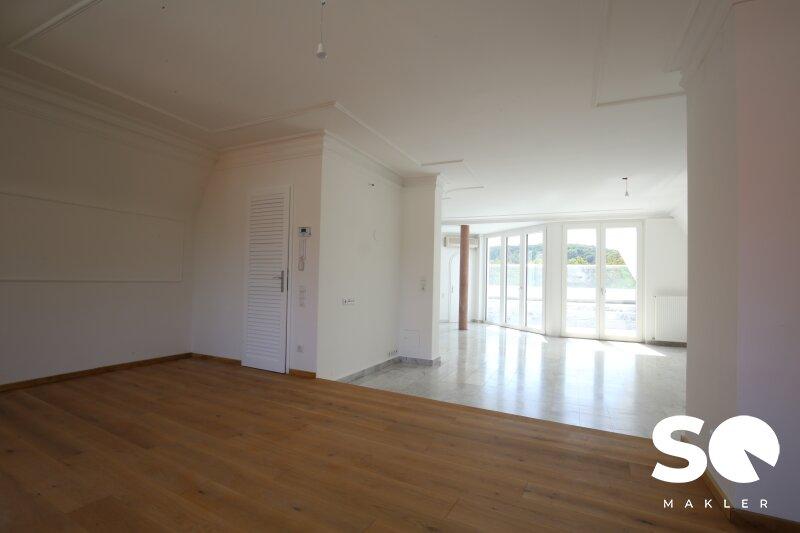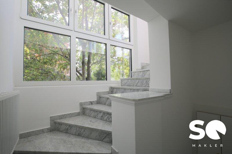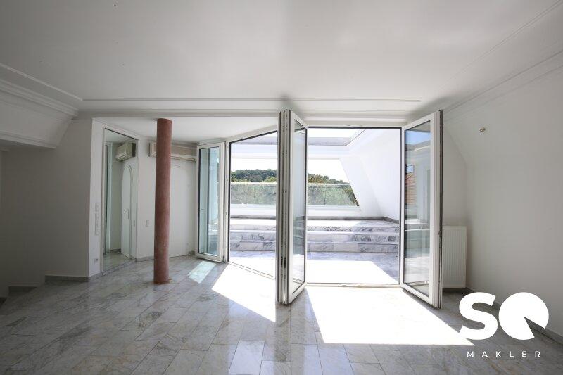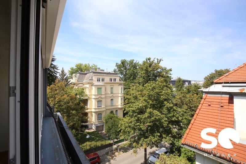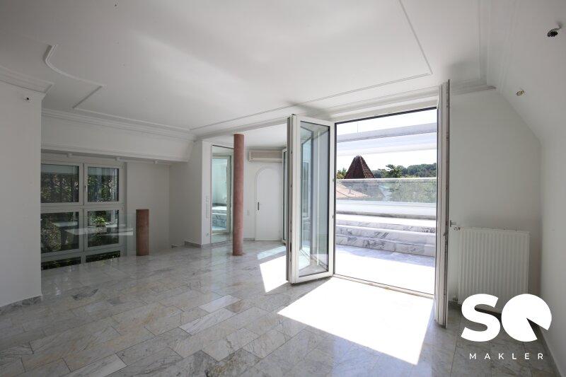 Das Herzstück dieser einzigartigen Wohnung ist die ca. 27 m² große, uneinsehbare Südterrasse, die Ihnen einen traumhaften Weitblick Blick Richtung Hügelpark und auf den Küniglberg bietet.