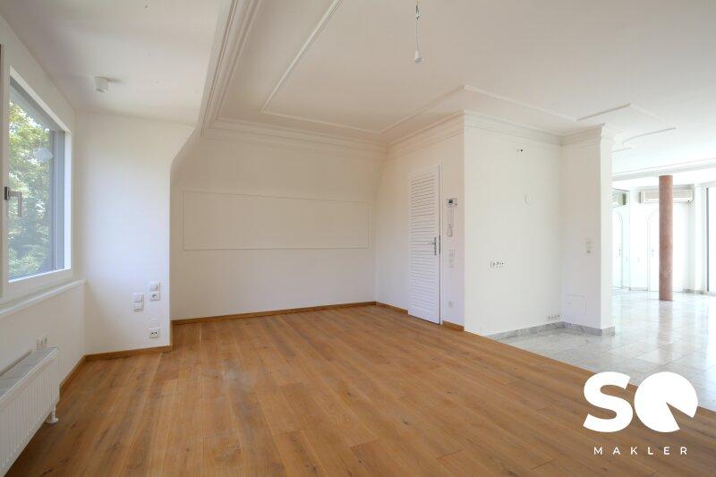 Diese einzigartige Dachgeschosswohnung im begehrten Hietzinger Cottage bietet modernen Komfort auf höchstem Niveau. Die großzügigen, loftartigen Räumlichkeiten verleihen der Wohnung ein offenes, lichtdurchflutetes Ambiente.