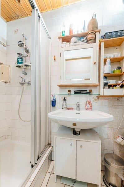 - Badezimmer mit Dusche und Waschmaschinenanschluss