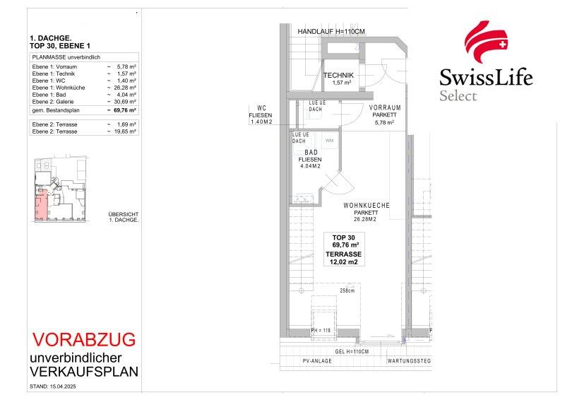 Die Raumaufteilung der Wohnung Top 30 gestaltet sich wie folgt:
