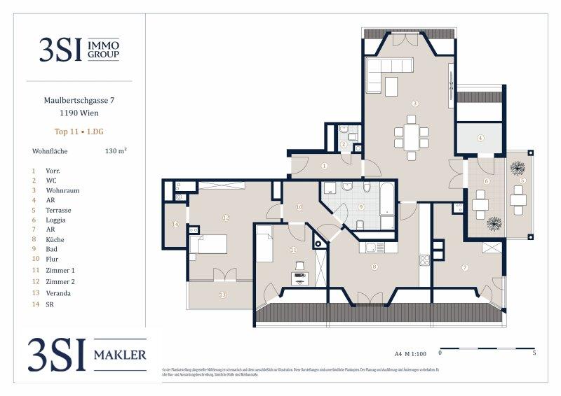 Im 1. Dachgeschoss eines gepflegten Neubaus befindet sich diese großzügige 3-Zimmer-Wohnung mit einer Wohnfläche von ca. 130m². Ergänzt wird das Raumangebot durch eine ca. 8m² große Terrasse sowie eine ca. 5m² umfassende Loggia ideal für entspannte Stunden im Freien.
