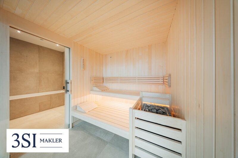 • Untergeschoß: Schlafzimmer, Bad mit Dusche, Wanne und WC, Sauna, Ruhebereich mit Dusche, Technikraum, WC, Zugang zum Pool und 192 m² Garten