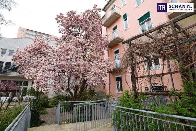 Grüner Innenhof mit Magnolienbaum ein bezaubernder Ort mitten in der Stadt - Relax & Enjoy.