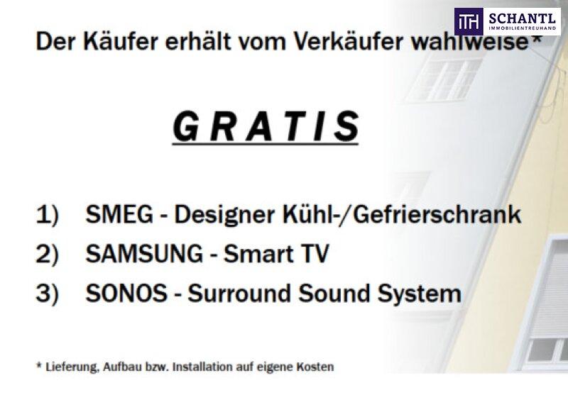 Zusätzlich zu einer modernen und hochwertig sanierten Wohnung erhält der Käufer als besonderes Geschenk vom Verkäufer eines der folgenden hochwertigen Geräte nach Wahl