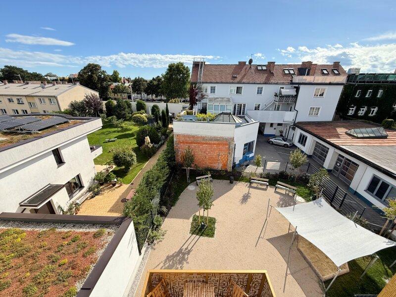 Die Wohnung ist mit hochwertigen Parkettböden in den Wohnräumen, modernen Fliesen in den Nassbereichen sowie zeitgemäßer Haustechnik ausgestattet. Großflächige Fensterflächen mit Sonnenschutz sorgen für helle Räume und ein angenehmes Wohngefühl. Das Gebäude verfügt außerdem über Fahrradabstellplätze, Kinderwagenräume und ein begrüntes Flachdach.