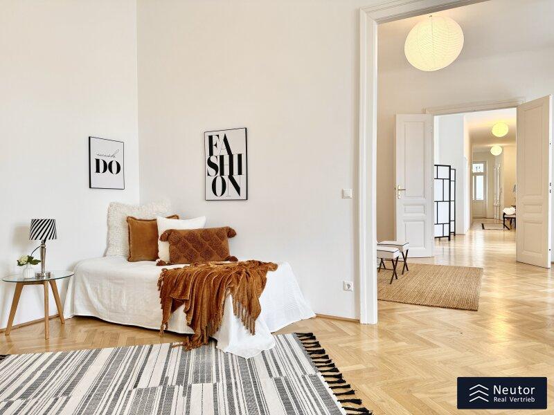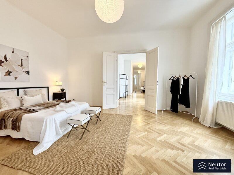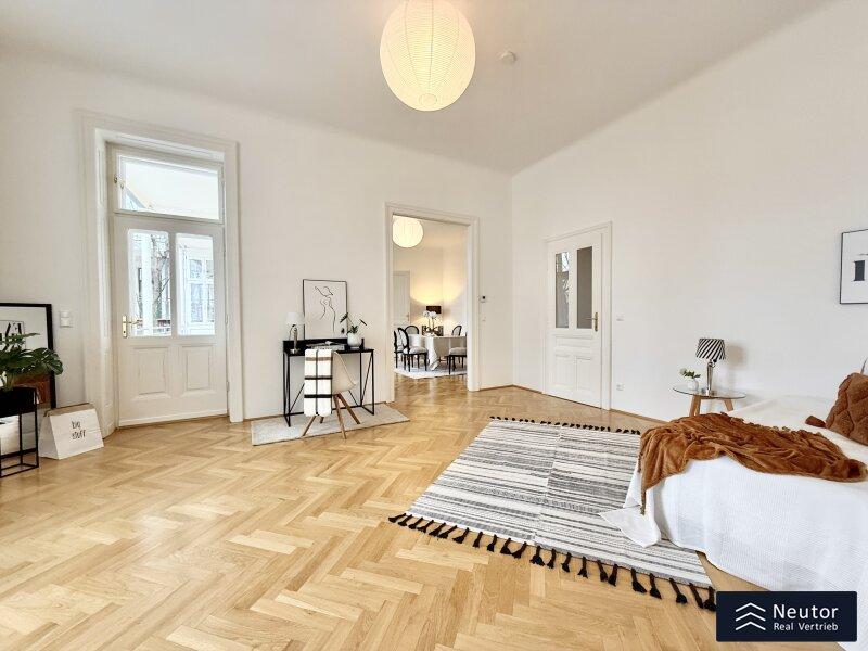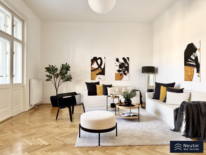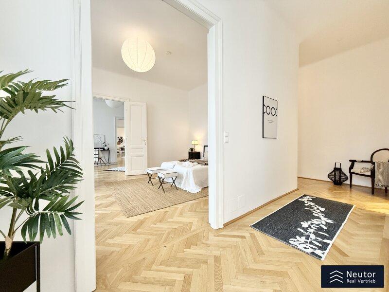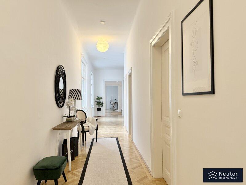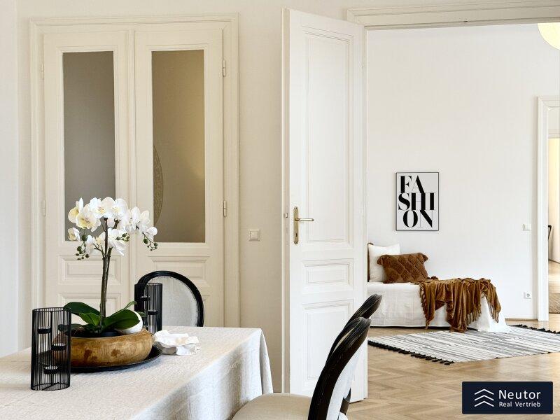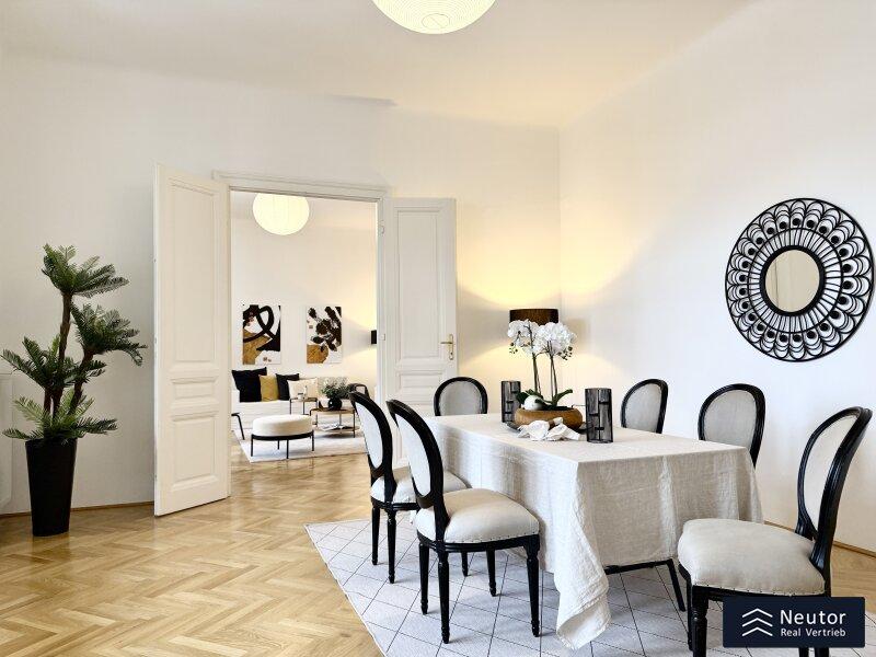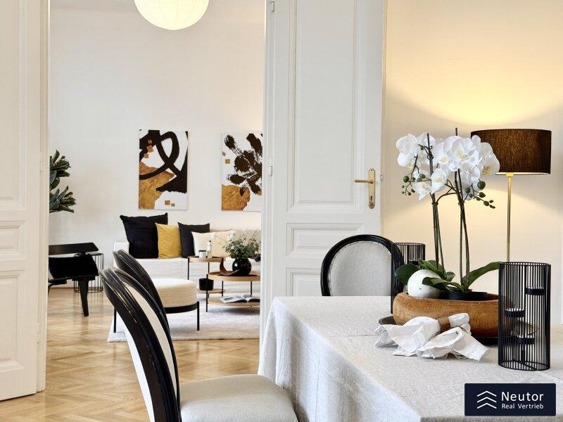In einer der prestigeträchtigsten Lagen des 8. Bezirks präsentiert sich diese exklusive Altbauwohnung mit großzügigen fünf Zimmern und zwei Balkonen. Ein wahres Wohnjuwel, das klassischen Charme, zeitlose Eleganz und modernen Komfort auf höchstem Niveau vereint.