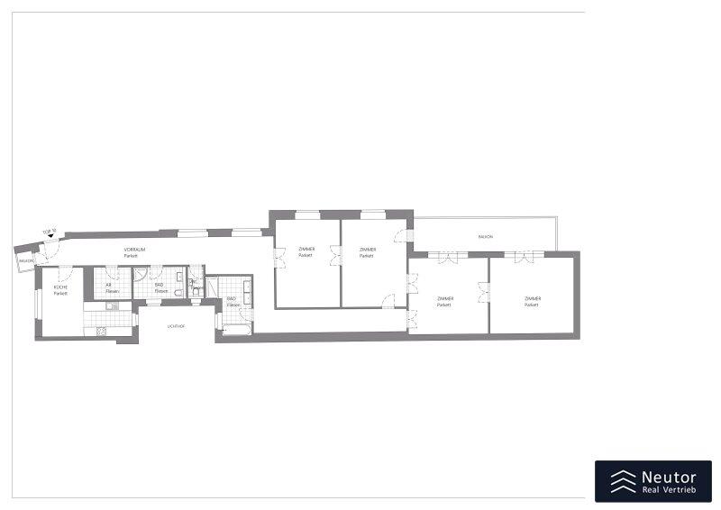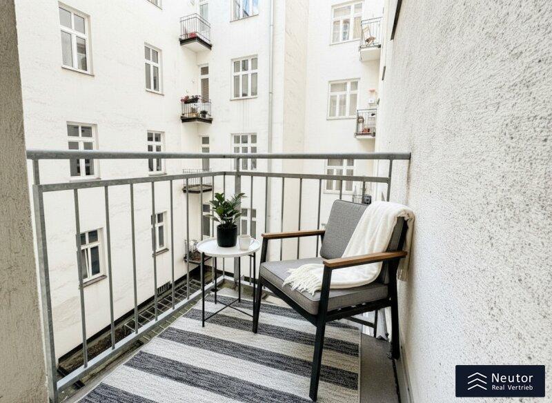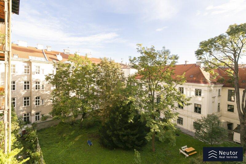 Der ruhige hintere Teil der Wohnung umfasst vier separat begehbare Zimmer, deren durchdachte Anordnung vielfältige Nutzungsmöglichkeiten eröffnet. Ob als Wohnzimmer, Schlafzimmer, Kinderzimmer oder Arbeitszimmer - jeder Raum lässt sich ganz nach Ihren persönlichen Vorstellungen gestalten. Drei der Zimmer verfügen über direkten Zugang zum absoluten Highlight der Wohnung: einem außergewöhnlich großzügigen Balkon, der sich harmonisch zum traumhaften Innenhof hin öffnet. Dieser besondere Außenbereich bietet ausreichend Raum für Ihre Ideen: von einer stilvollen Lounge-Zone bis hin zu einem liebevoll gestalteten urbanen Gartenparadies.