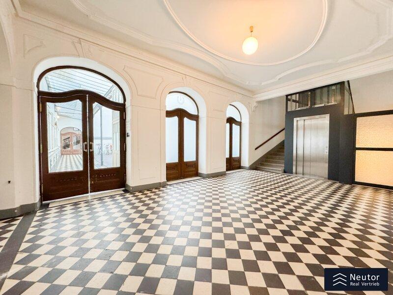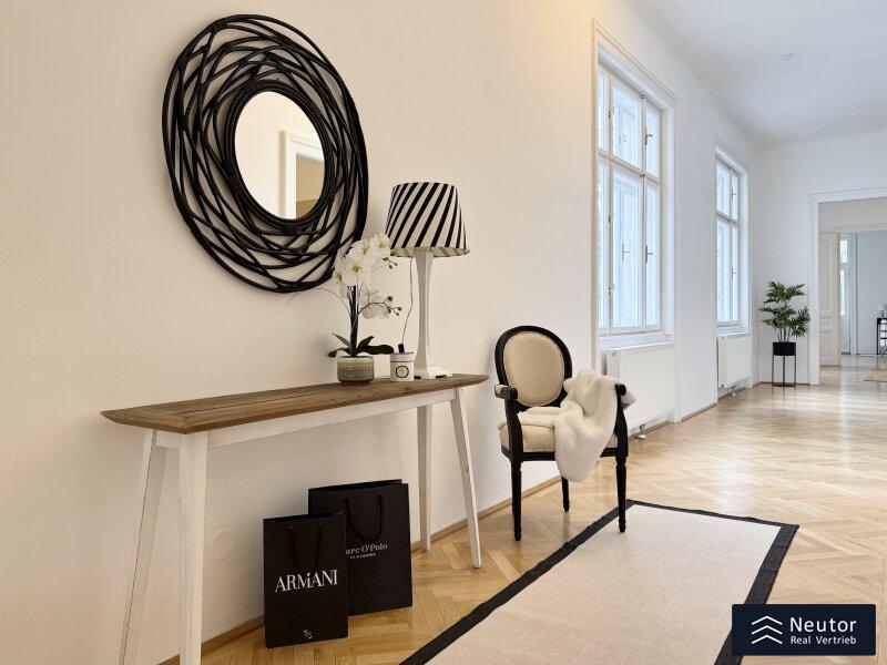 Schon beim Eintreten empfängt Sie zur Linken ein großzügiger Vorraum, der den eleganten Charakter der Wohnung eindrucksvoll widerspiegelt.