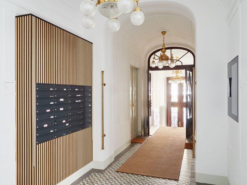 Dieses sanierte Schmuckstück verbindet historische Eleganz mit zeitgemäßem Komfort. Der Eingangsbereich beeindruckt mit edlen Holzverkleidungen und einem modernen digitalen schwarzen Brett, das die Bewohner stets auf dem Laufenden hält. Die renovierten Lichthöfe sorgen für ein helles und freundliches Ambiente. Ein Lift ist selbstverständlich vorhanden und bietet bequemen Zugang zu allen Stockwerken.