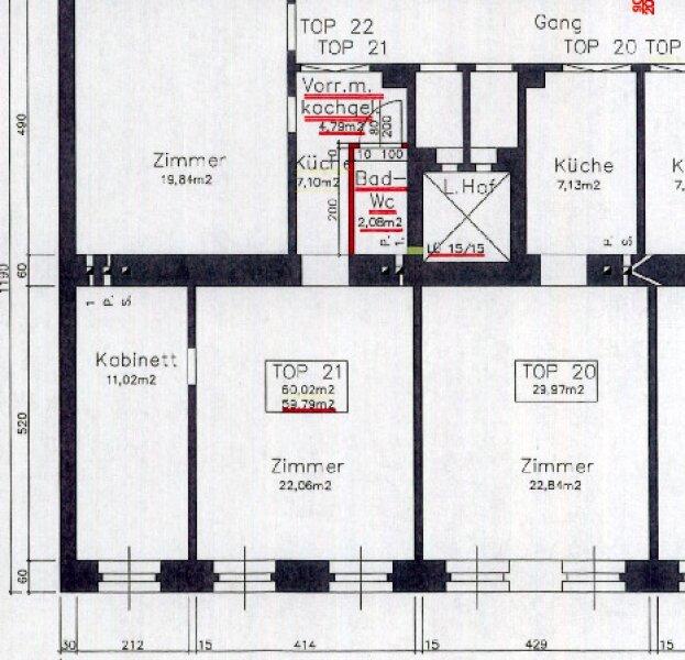 Derzeit ist die Wohnung vermietet. Der befristete Mietvertrag läuft noch bis Ende des Jahres, mit monatlichen Mieteinnahmen von 550 Euro inklusive Betriebskosten uns Ust.