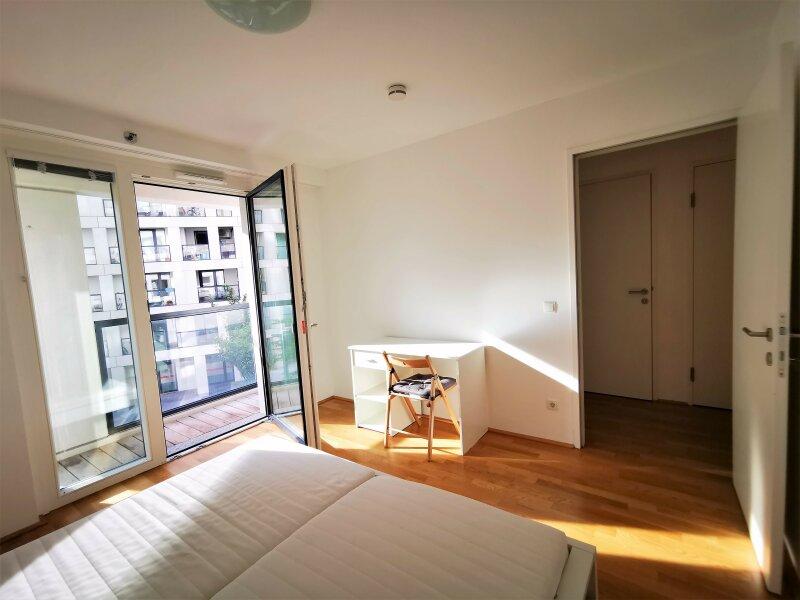 Sie verfügt über raumhohe dreifach-verglaste Fenster, sowie eine vorgelagerte Freifläche / Loggia mit ca. 22 m2 Fläche, die von jedem Zimmer aus separat begehbar ist.