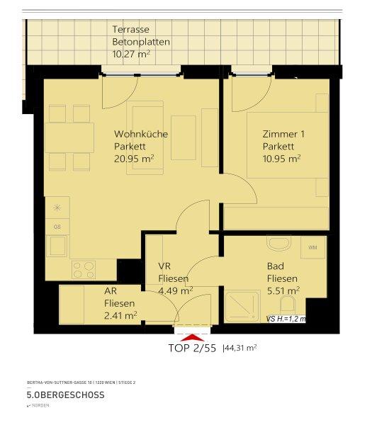 2-Zimmer Dachterrassenwohnung inkl. Komplettküche und Kellerabteil / K2-55 - Objektnr. 5602024