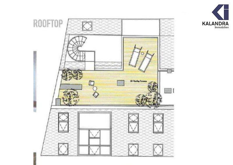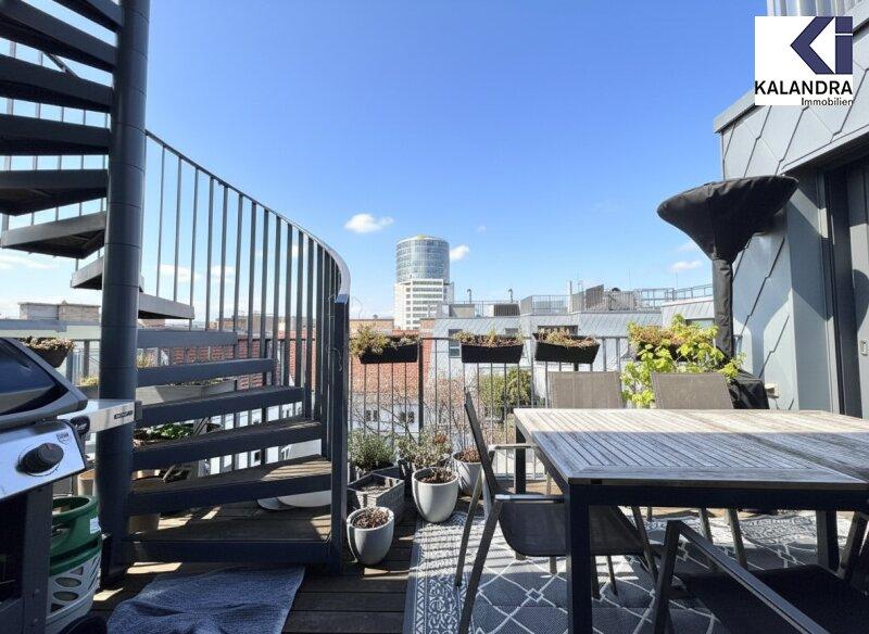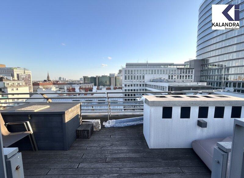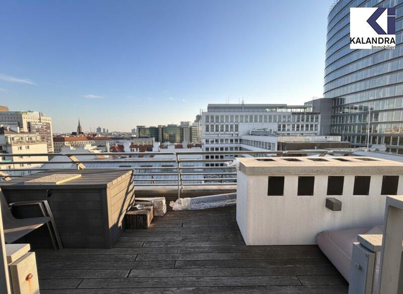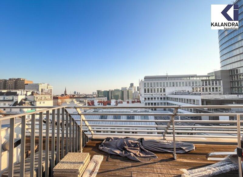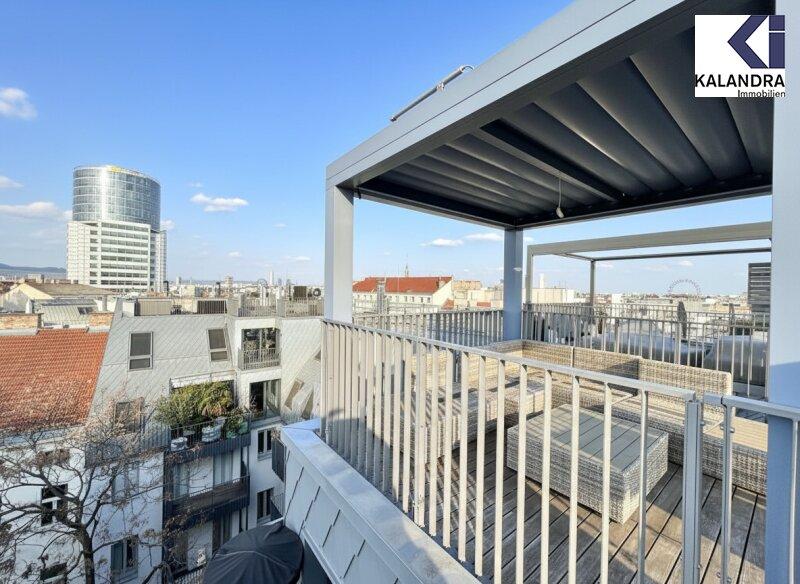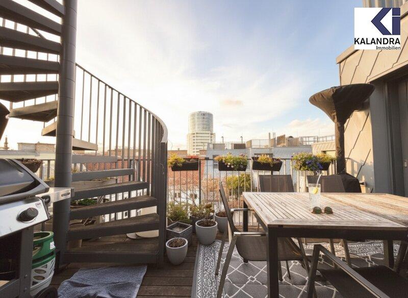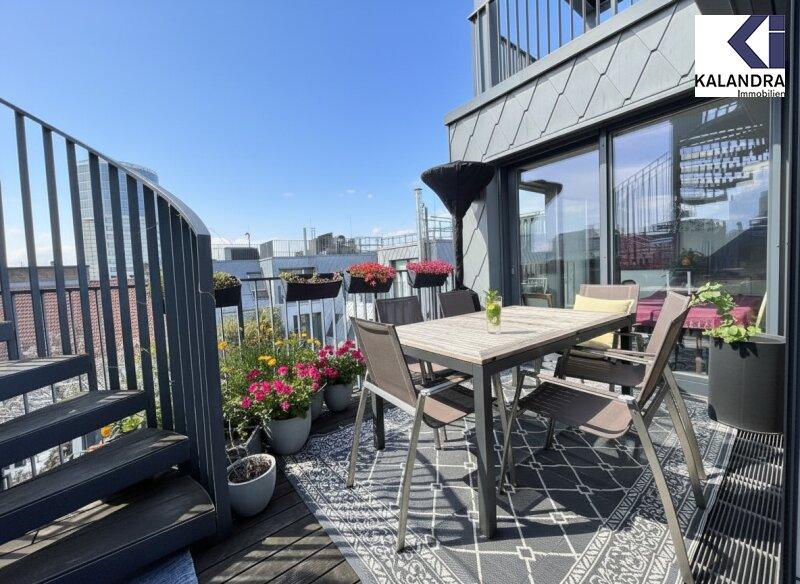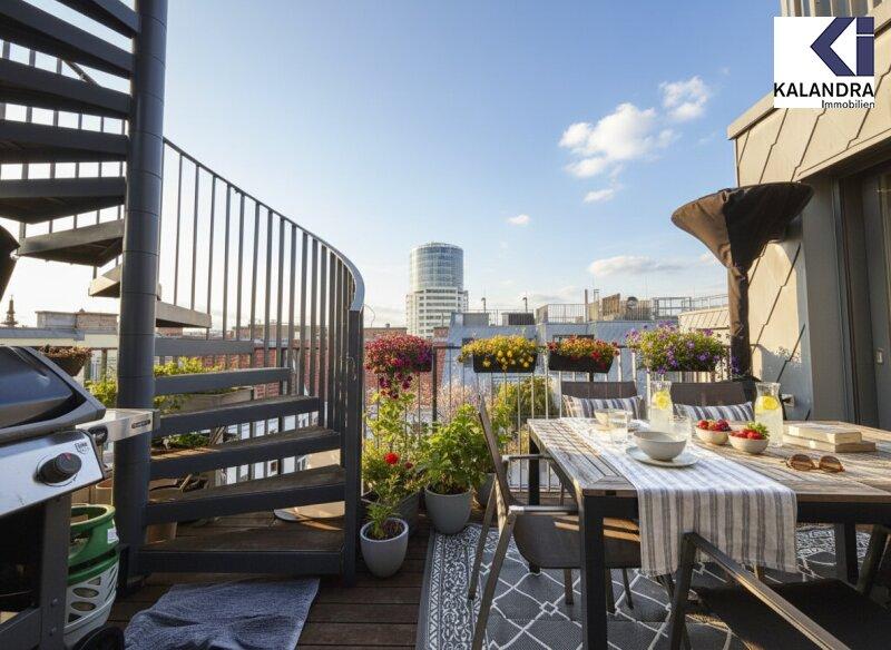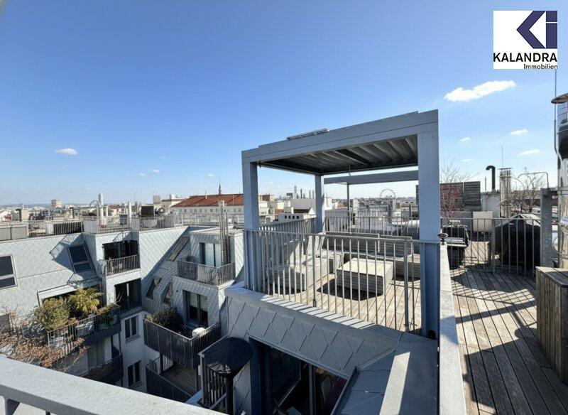Eine 40 m² große Dachterrasse mit Rundumblick über Wien.