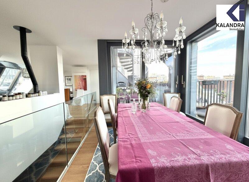 Die Wohnung liegt in einem exklusiv ausgebauten Dachgeschoß (BJ 2020) eines generalsanierten Jahrhundertwendehauses mit Panoramablick über die Stadt bis zum Kahlenberg und Leopoldsberg.