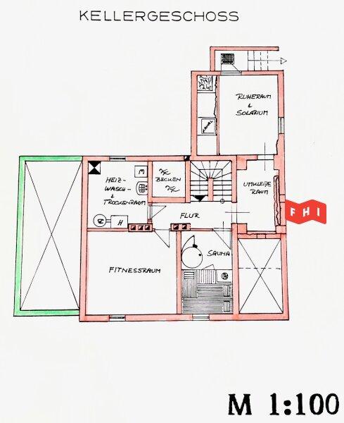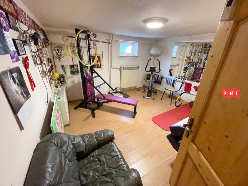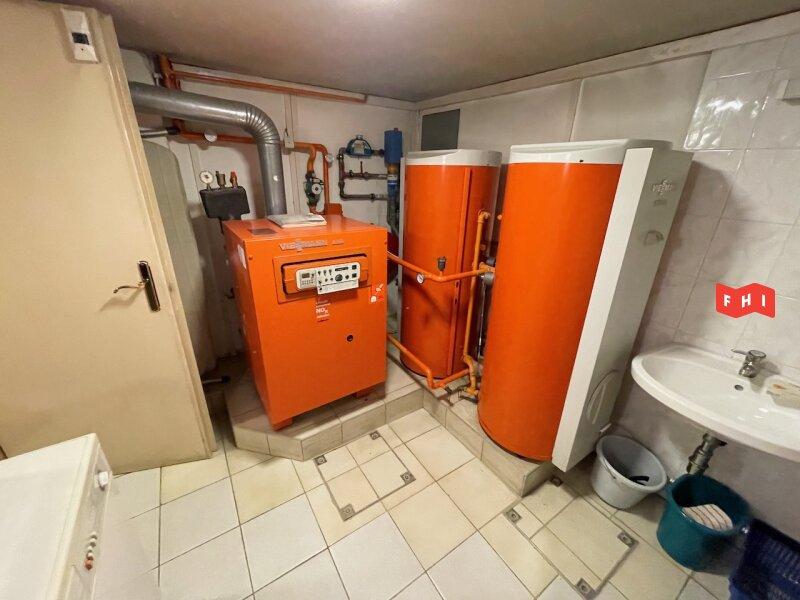 Keller: Vollkeller gefliest u. mit Laminatboden, beheizbar, Vorraum, Sauna mit Duschbad, Lagerraum derzeit für Fitness (ca 16m²), Stüberl (ca. 16m²), Technikraum mit Viessmann Gas-Zentralheizung, 300l Warmwasseraufbereitung, Waschmaschinen- u. Trockneranschluss sowie mit Waschbecken,
