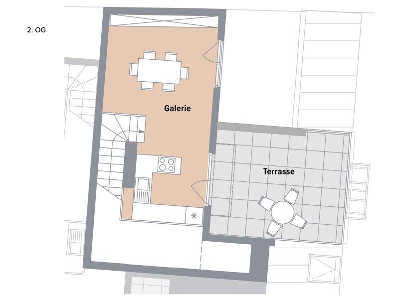 Das 2. Obergeschoss ist als Galerieebene ausgeführt und eignet sich ideal als zusätzlicher Wohnbereich, Homeoffice oder Rückzugszone. Von hier aus gelangt man direkt auf die Terrasse, die einen hochwertigen Freibereich mit viel Privatsphäre bietet.