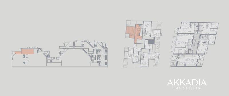 Die klare Trennung der Ebenen sowie die Kombination aus Galerie und Terrasse verleihen der Wohnung ein besonders angenehmes und modernes Wohnambiente.