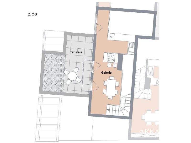 Das 2. Obergeschoss ist als großzügige Galerieebene ausgeführt und eignet sich ideal als zusätzlicher Wohnbereich, Homeoffice oder Rückzugszone. Von hier aus gelangt man direkt auf die Terrasse, die einen hochwertigen Freibereich mit viel Privatsphäre bietet.