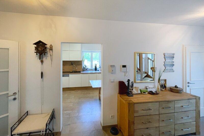 Mit einer Wohnfläche von ca. 194,88 m² bietet dieses 2016 weitreichend sanierte Haus ausreichend Platz für Ihre Familie und Gäste. Sie betreten das Haus durch eine einladende Diele, die Ihnen sofort das Gefühl von Zuhause vermittelt. Die sechs hellen und freundlichen Zimmer sind optimal geschnitten und bieten vielseitige Nutzungsmöglichkeiten sei es als Schlafzimmer, Arbeitszimmer oder Spielzimmer für die Kinder. Die großen Fenster sorgen für lichtdurchflutete Räume und ein angenehmes Wohnklima. Die komplett ausgestattet Küche ist separat begehbar und über eine Durchreiche mit dem Esszimmer verbunden. Das Wohnzimmer ist durch eine unterbrochene Mauer optisch vom Esszimmer getrennt. Für kuschelige Wintertage befindet sich im Wohnbereich ein offener Kamin