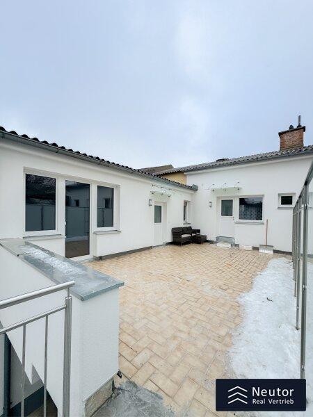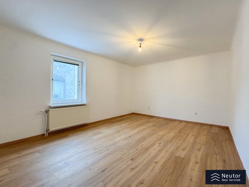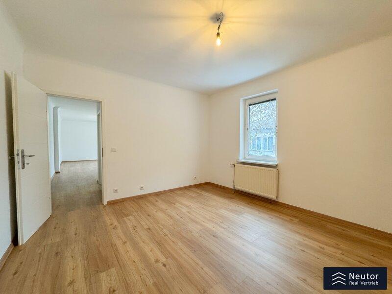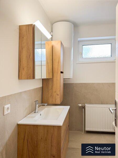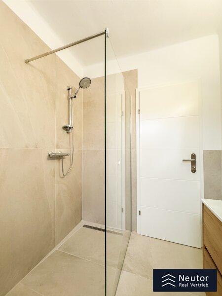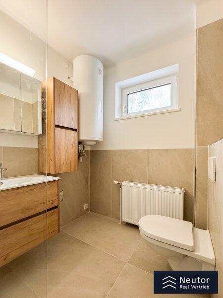 Bereits beim Betreten der Wohnung offenbart sich die gelungene Verbindung aus hochwertiger Sanierung und einladender Wohnatmosphäre. Über einige Stufen erreicht man die neu sanierte Terrasse, die den idealen Übergang zwischen Innen- und Außenbereich bildet. Beim Betreten der Wohnung empfängt Sie ein stilvoll gestalteter Vorraum, der mit einer großzügigen Garderobenlösung ausgestattet ist. Dieser Bereich bietet nicht nur ausreichend Stauraum für Kleidung und Accessoires, sondern überzeugt auch durch seine funktionale Eleganz, die einen ersten Eindruck von Exklusivität vermittelt. Die klare Linienführung und die hochwertigen Materialien setzen bereits hier den Ton für den besonderen Charakter der Wohnung. Zur Linken des Eingangsbereichs öffnet sich die beeindruckende Wohnküche, die mit einer modernen Einbauküche ausgestattet ist. Diese ist nicht nur funktional, sondern begeistert mit ihren durchdachten Stauraumlösungen, die sie zum idealen Ort für kulinarische Kreationen machen. Mehrere Fenster durchfluten den Raum mit natürlichem Tageslicht und sorgen für eine optimale Belüftung perfekt, um beim Kochen eine frische und inspirierende Atmosphäre zu genießen. Die offene Gestaltung der Wohnküche lädt zu gemeinsamen Mahlzeiten oder geselligen Abenden ein und verbindet Funktionalität mit einem einladenden Flair. Über die Wohnküche gelangen Sie in das luxuriös ausgestattete Badezimmer, das mit einer modernen, bodengleichen Dusche, einem hochwertigen WC und einem eleganten Waschtisch überzeugt. Ein weiteres Fenster sorgt für hervorragende Lichtverhältnisse und eine natürliche Belüftung, die den Raum zu einer Wohlfühloase macht. Das Herzstück der Wohnung ist das großzügig geschnittene Schlafzimmer, das durch seine intelligente Raumaufteilung und seine lichtdurchflutete Atmosphäre besticht. Der Raum bietet ausreichend Platz für ein komfortables Bett, einen geräumigen Kleiderschrank und weitere individuelle Gestaltungsmöglichkeiten. Die ruhige Lage und die harmonische Gestaltung machen das Schlafzimmer zu einem idealen Rückzugsort, der Erholung und Geborgenheit verspricht.