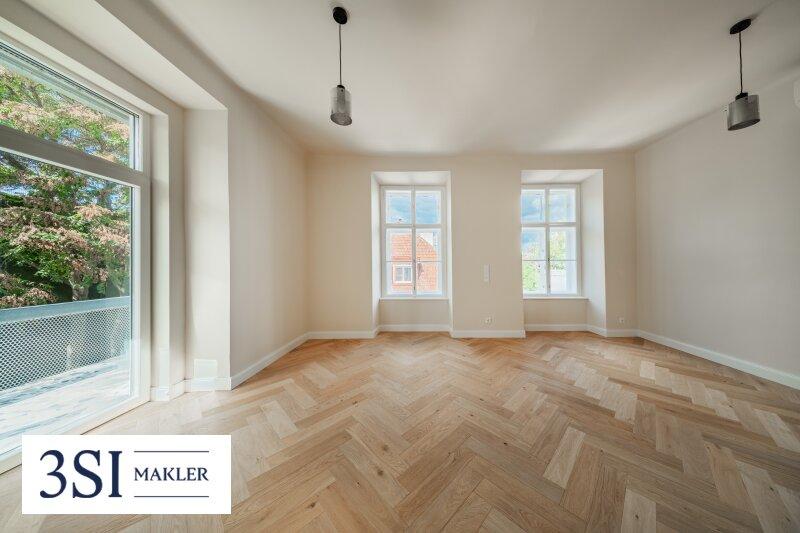 Diese großzügige Wohnung im 2. Obergeschoß vereint stilvolle Altbau-Eleganz mit zeitgemäßem Wohnkomfort. Auf rund 112 m² Wohnfläche sowie zwei Balkonen à ca. 6 m² entfaltet sich ein Zuhause, das gleichermaßen Großzügigkeit, Behaglichkeit und Eleganz vermittelt. Bereits beim Betreten schafft der einladende Vorraum ein Gefühl von Weite. Alle Räume sind zentral begehbar und durch einen angenehm proportionierten Gang miteinander verbunden, der dem Grundriss eine klare, fließende Struktur verleiht.