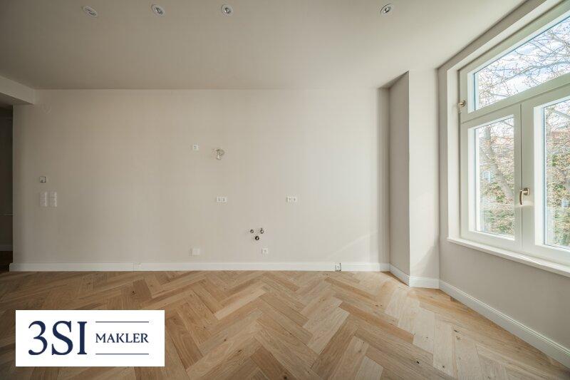Das Herzstück bildet die ca. 26 m² große Wohnküche mit hohen Decken, herrlicher Südwest-Loggia und ausreichend Platz für eine moderne Einbauküche sowie eine großzügige Sofalandschaft. Ein Raum, der Geselligkeit und Wohlfühlambiente perfekt vereint.