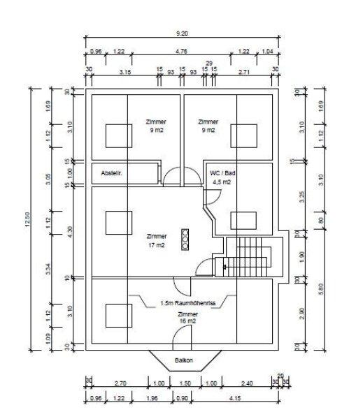 Das Haus ist auf drei Ebenen gegliedert: Kellergeschoss, Erdgeschoss, Oberes Geschoss (Dachgeschoss). Die Zimmer sind alle sehr gut geschnitten und zentral begehbar.