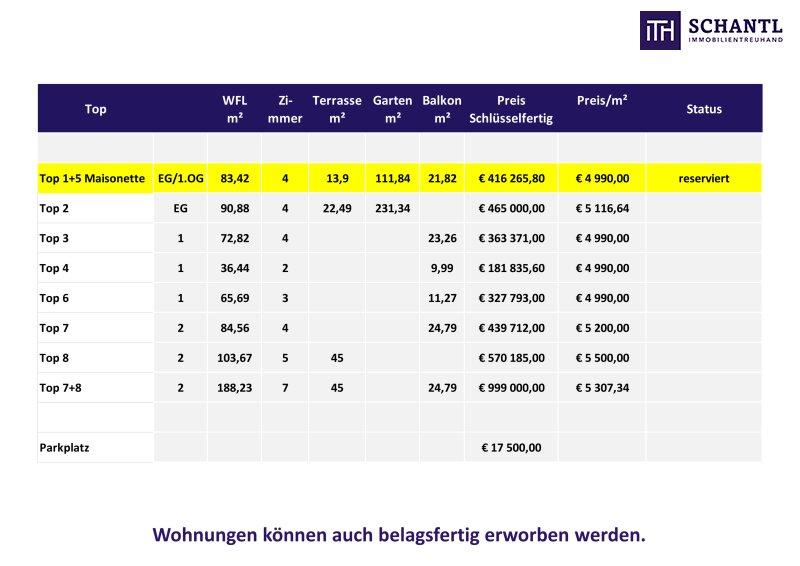 • KP der Top 6 brutto € 313.900,00 BELAGSFERTIG!!! (der Nettopreis beträgt - 9%)