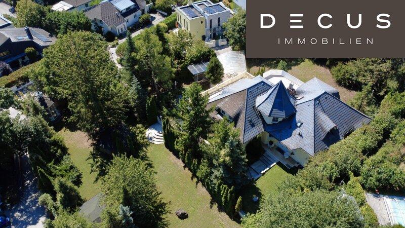 Das Haus steht auf einem sanft abfallenden Grundstück und vermittelt bereits von außen den Charakter einer außergewöhnlichen Residenz. Es präsentiert sich in einem gepflegten und hochwertigen Gesamtbild, das über die Jahre mit viel Sorgfalt bewahrt wurde.