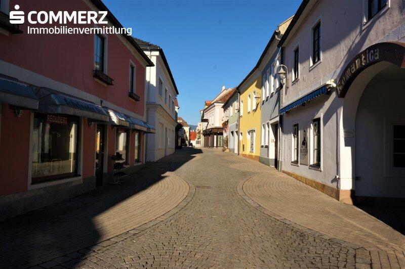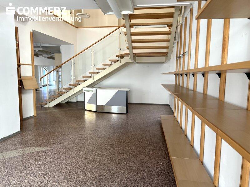 Das aktuell leerstehende Geschäftslokal wurde früher als Modegeschäft genutzt und hat eine Gesamtfläche von ca. 390 m², verteilt auf zwei Ebenen. Das Erdgeschoss und das Obergeschoss besteht aus einer offenen Verkaufsfläche. Weiters befinden sich im Obergeschoss 2 Wohnungen, welche durch einen Zugang durch den Innenhof erreichbar sind. Die Wohnungen haben eine Fläche von ca. 51,70 m² sowie ca. 77,74 m². Ein großer Dachboden, welcher sich derzeit in einem frühen bis mittleren Ausbaustadium befindet, gehört ebenfalls dazu. Zugehörig zur Liegenschaft ist noch eine Bar mit einer Fläche von ca. 65 m², diese ist derzeit in Betrieb.
