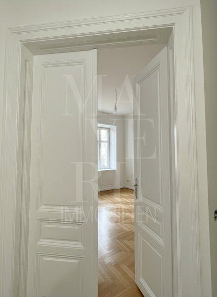 Die gegenständliche Wohnung befindet sich in einer vollständig revitalisierten Mehrparteienvilla und steht kurz vor der finalen Fertigstellung. Der Personenaufzug führt direkt in das großzügige, zentral gelegene Entrée der Wohnung, von welchem sich die Räumlichkeiten wie folgt erschließen: